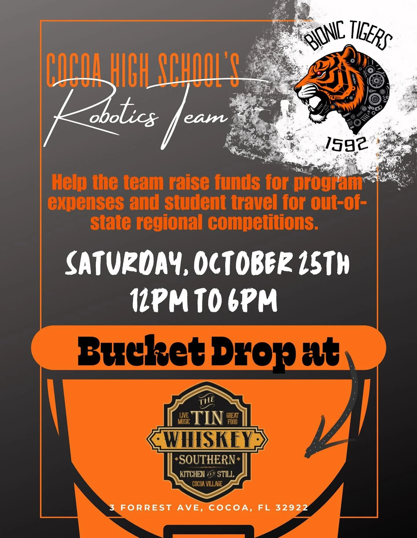 View fullsize Come out to @tinwhiskeysouthern and enjoy a delicious lunch or dinner while also supporting the Bionic Tigers! We will be there til 6 today!