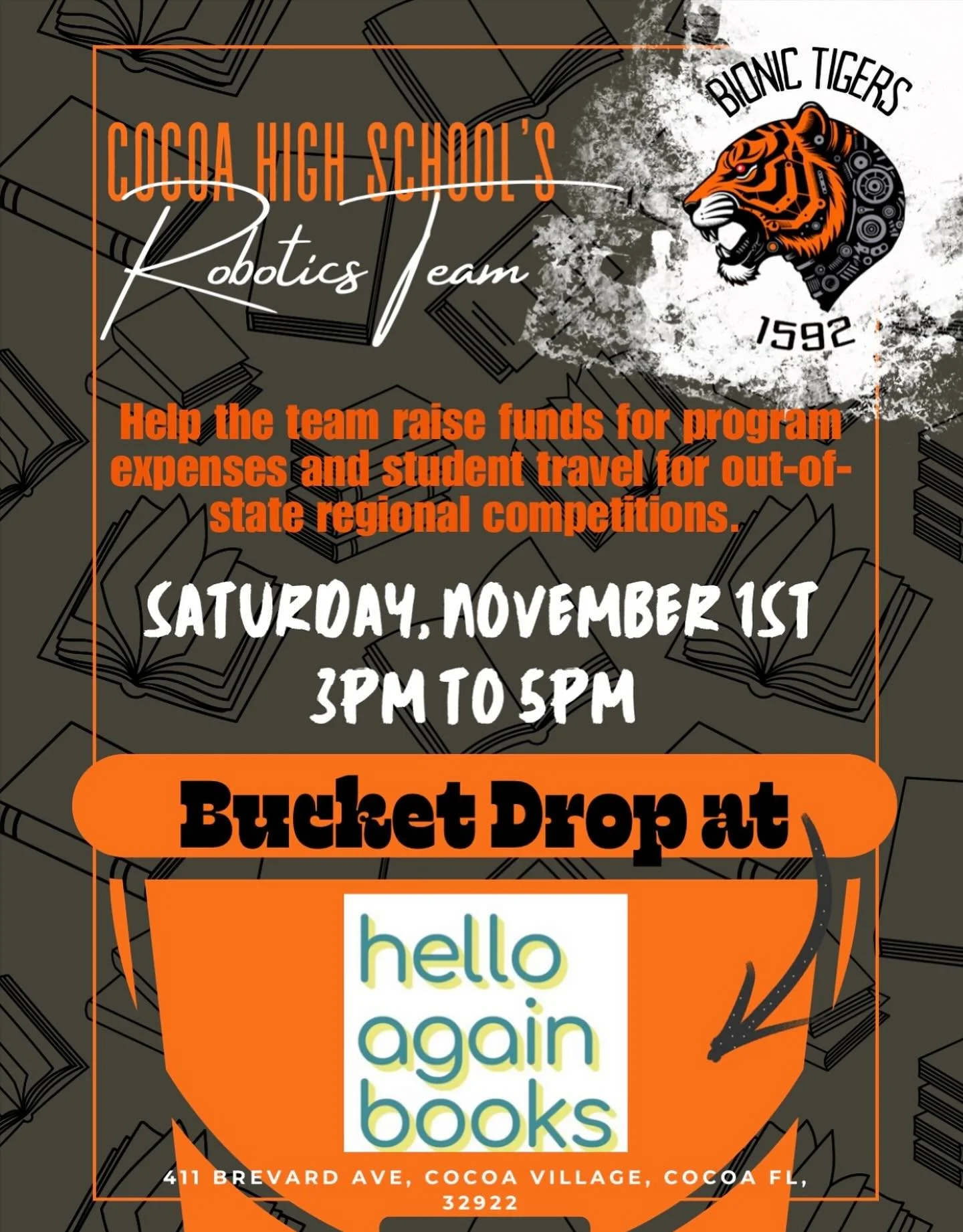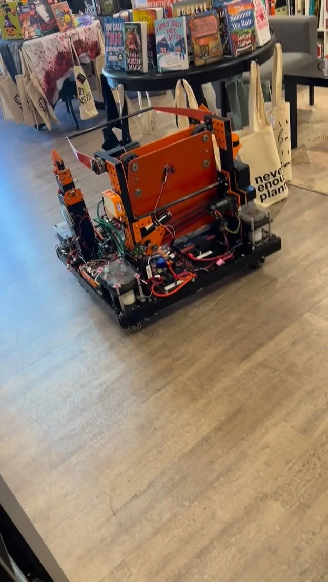 View fullsize This Saturday we will be at Hello Again Books 3pm-5pm to show off our robot and fundraise! Hope to see you there!